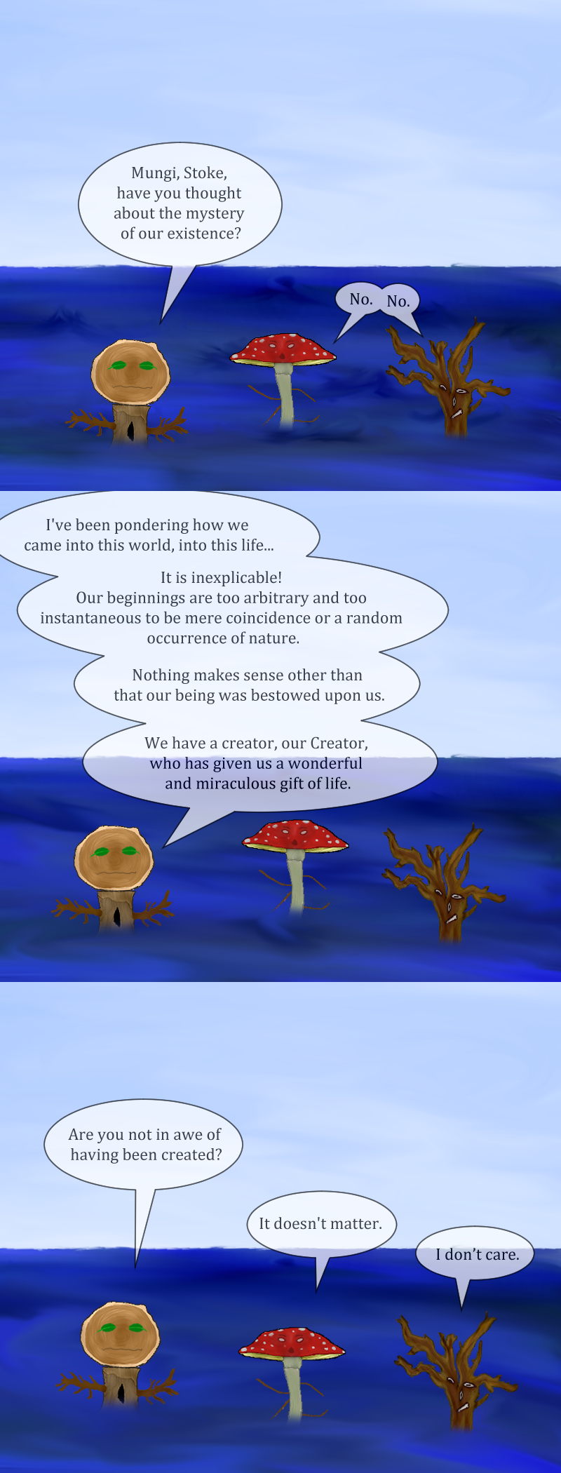 a comic about three plants drifting aimlessly in the ocean